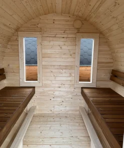 Pirtyse be priešpirčio montuojamos tonuoto stiklo (standartas) arba medinės durys su tonuotu stiklu iš termiškai apdorotos medienos. Su priešpirčiu – išorinės durys gali būti iš eglės medienos su tonuotu stiklu.