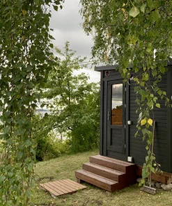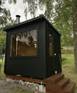 Pirtyse be priešpirčio montuojamos tonuoto stiklo (standartas) arba medinės durys su tonuotu stiklu iš termiškai apdorotos medienos. Su priešpirčiu – išorinės durys gali būti iš eglės medienos su tonuotu stiklu.