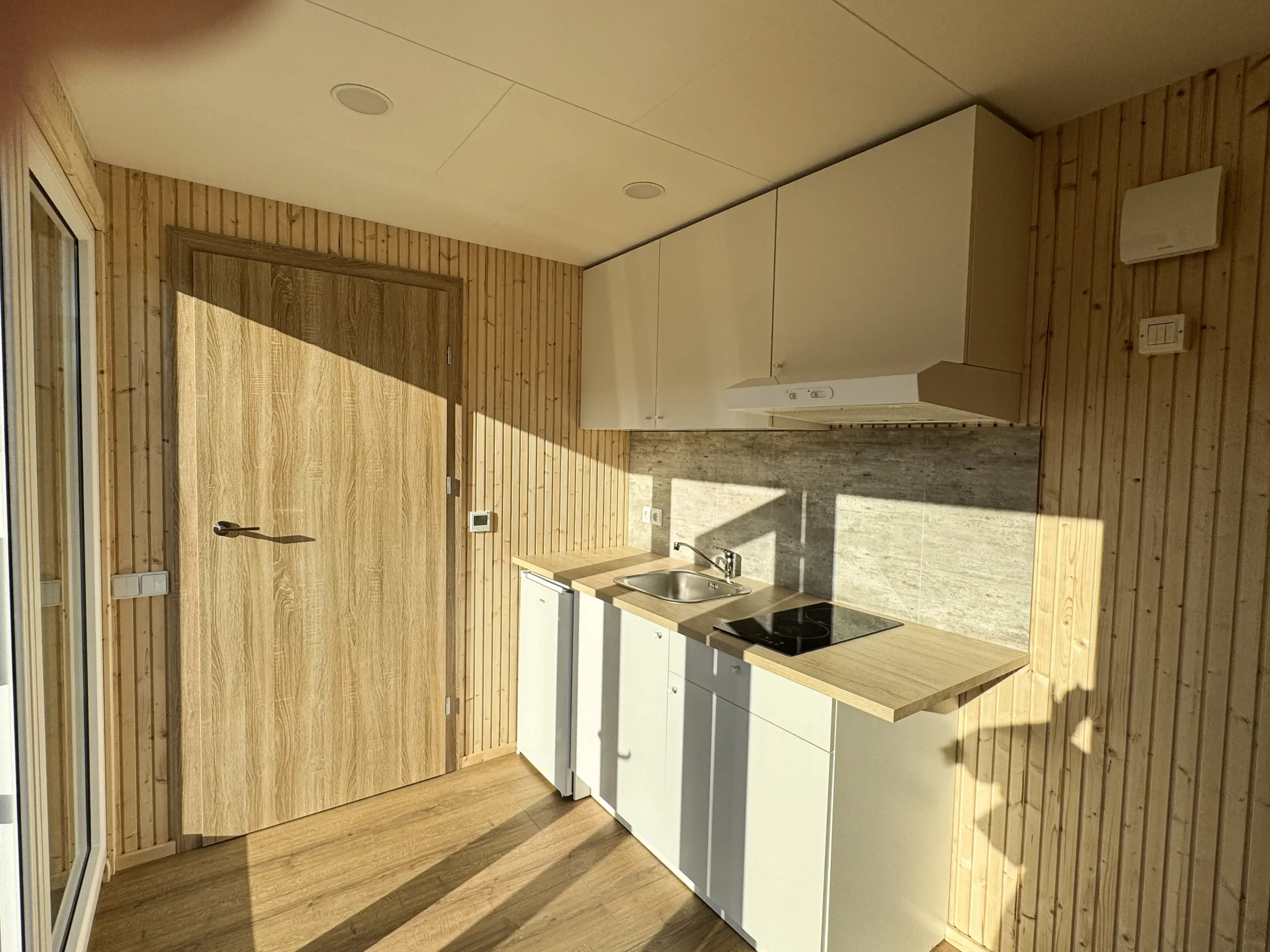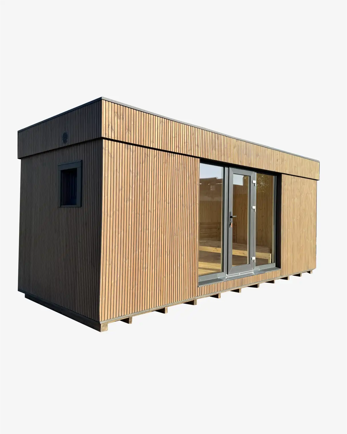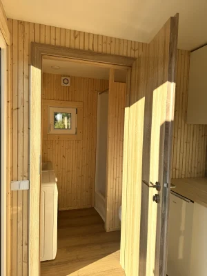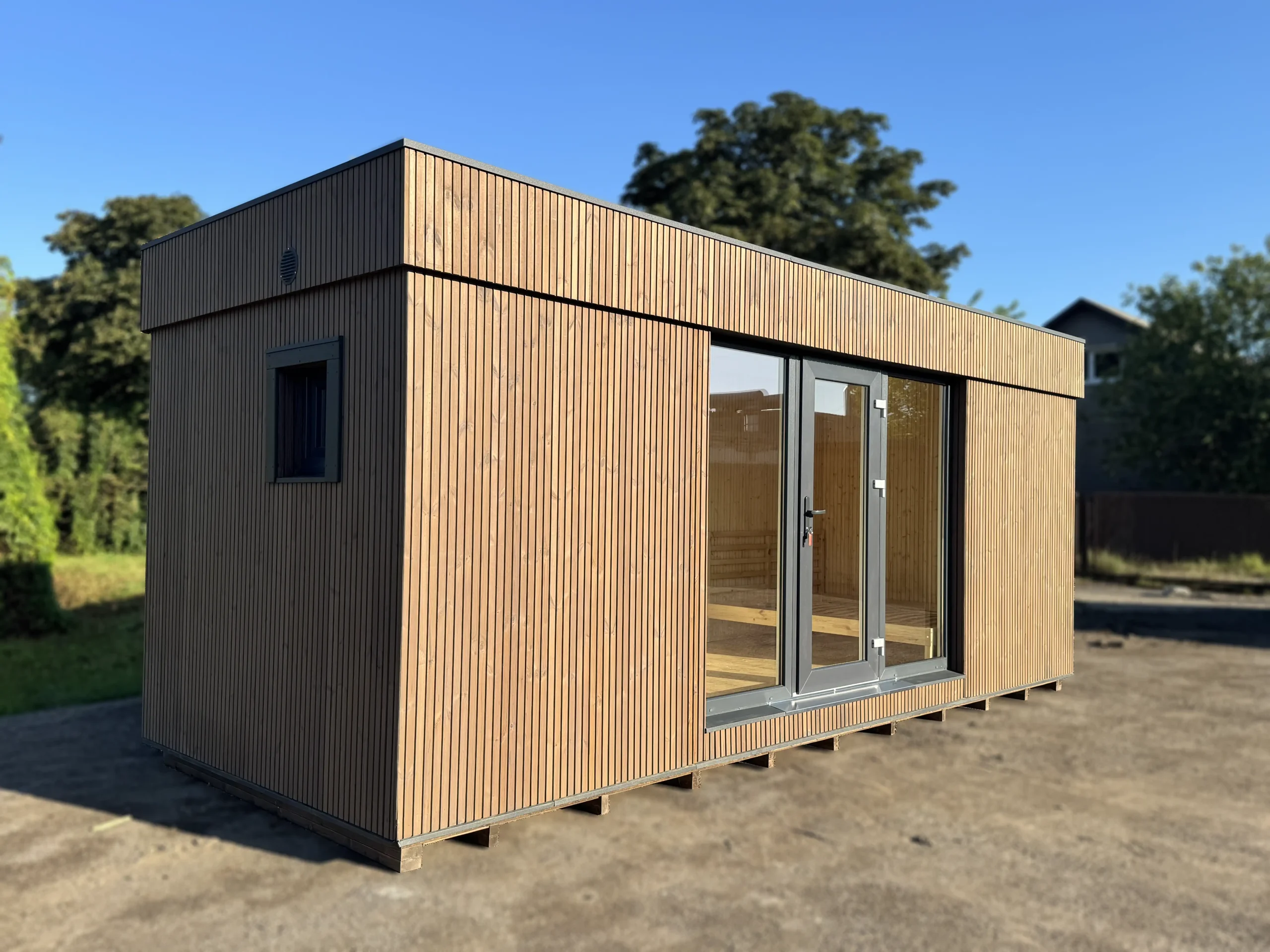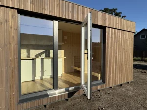 Modulinis gyvenamas namelis Therma – tai kompaktiškas, bet funkcionalus būstas, pritaikytas gyvenimui, poilsiui. Patogi gyvenamoji erdvė, atskiras vonios kambarys ir integruota virtuvė su buitine technika leidžia jaustis kaip tikruose namuose. Namelyje įrengta grindų šildymo sistema, ventiliacija bei rekuperatorius užtikrina komfortą visais metų laikais. Konstrukcija yra pilnai apšiltinta akmens vata, o integruota apsauga nuo graužikų ir vabzdžių suteikia papildomą saugumą bei ilgaamžiškumą. Termiškai apdorotos medienos fasadas, antracito spalvos stogas ir moderni apdaila dera prie bet kokios aplinkos. Vos atvežus, namelis iš karto paruoštas naudojimui – jis lengvai transportuojamas ir pastatomas tiek mieste, tiek sodyboje. Šis modulinis namelis puikiai tinka kaip pirmasis būstas, poilsio namelis ar papildomos erdvės šeimai. Jis gali tapti jaukiu svečių ar sodo nameliu, o taip pat – patraukliu sprendimu turistinei paskirčiai, pavyzdžiui, „Airbnb“ nuomai.